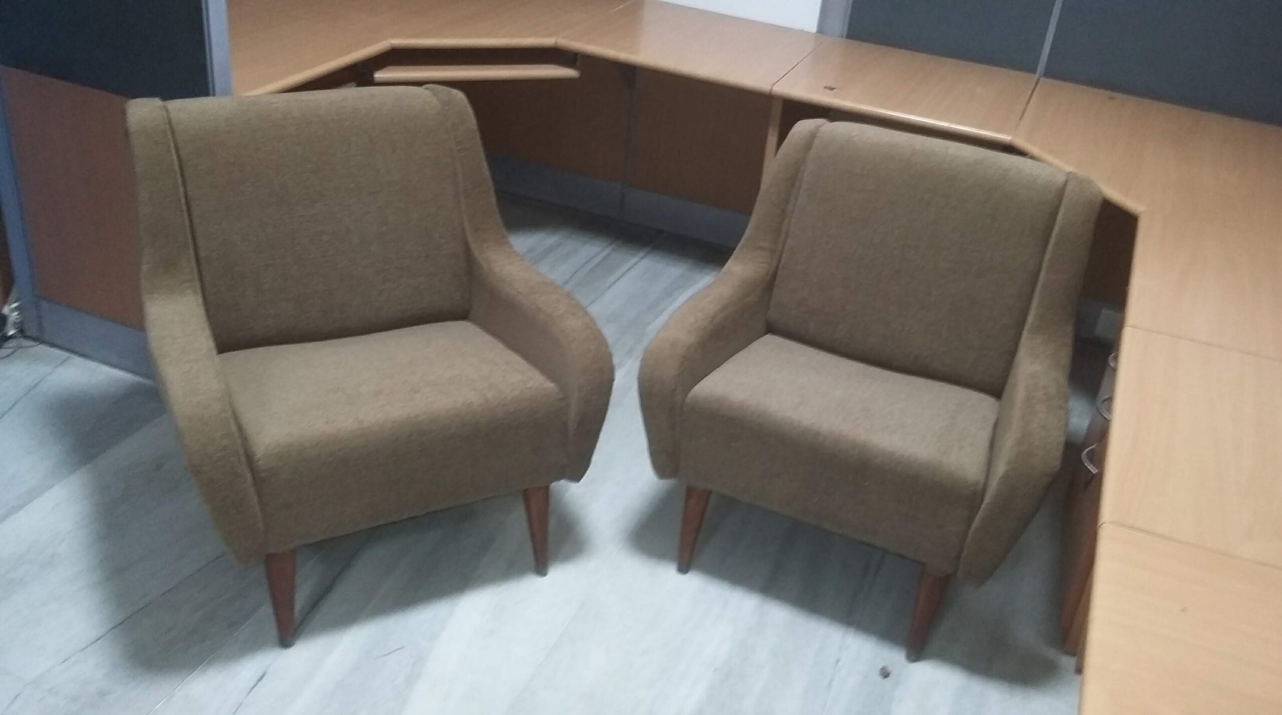 Elegant lounge chairs crafted with high-quality upholstery and strong wooden legs.